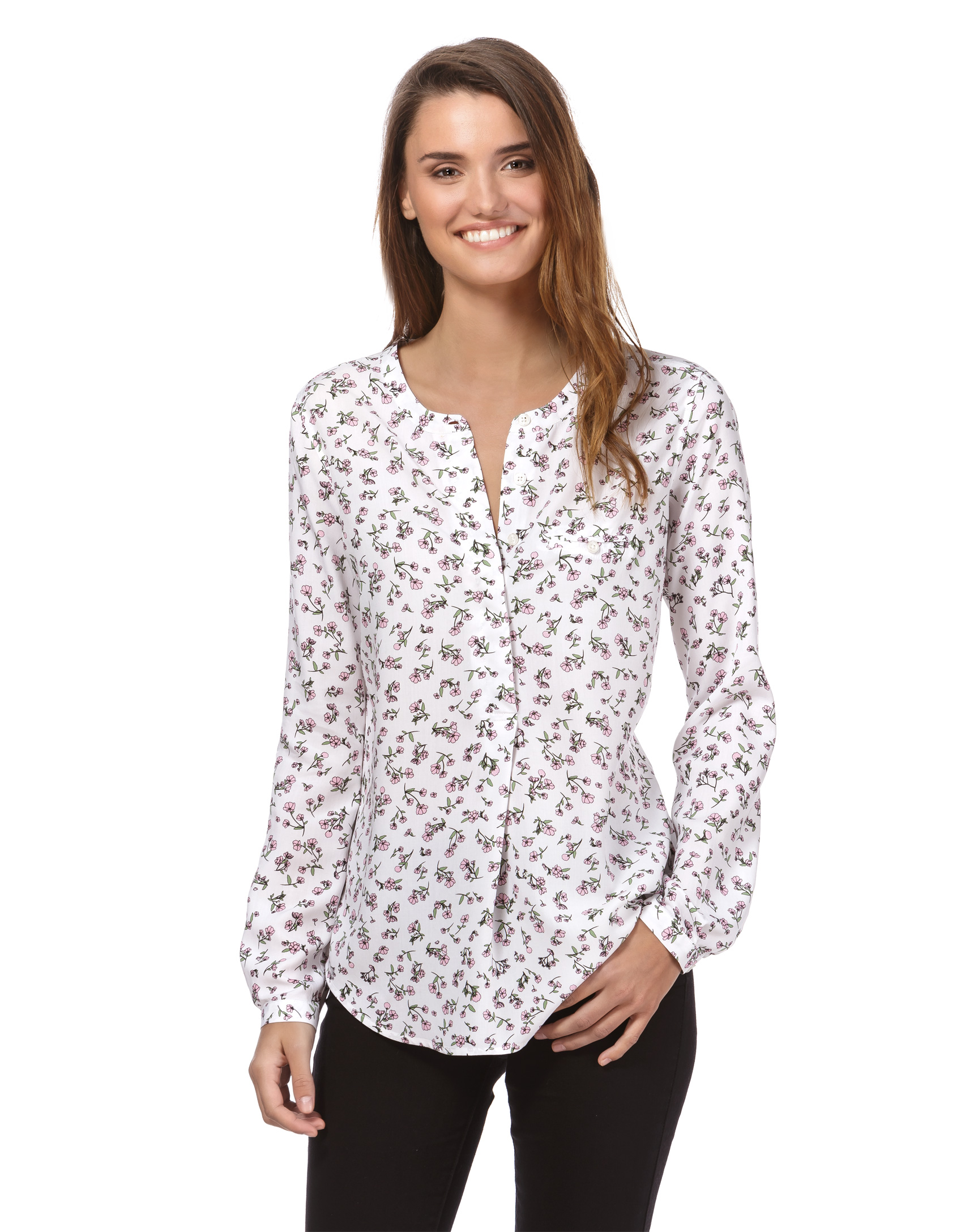 Eine zarte Schlupfbluse mit kurzer Knopfleiste und einer dezenten Brusttasche. Ein besonderer Hingucker ist die Rückenpartie. Am oberen Saum blitz etwas Haut durch und darunter fällt der Stoff durch die fließende Falte am Rücken elegant bis zum unteren Saum.