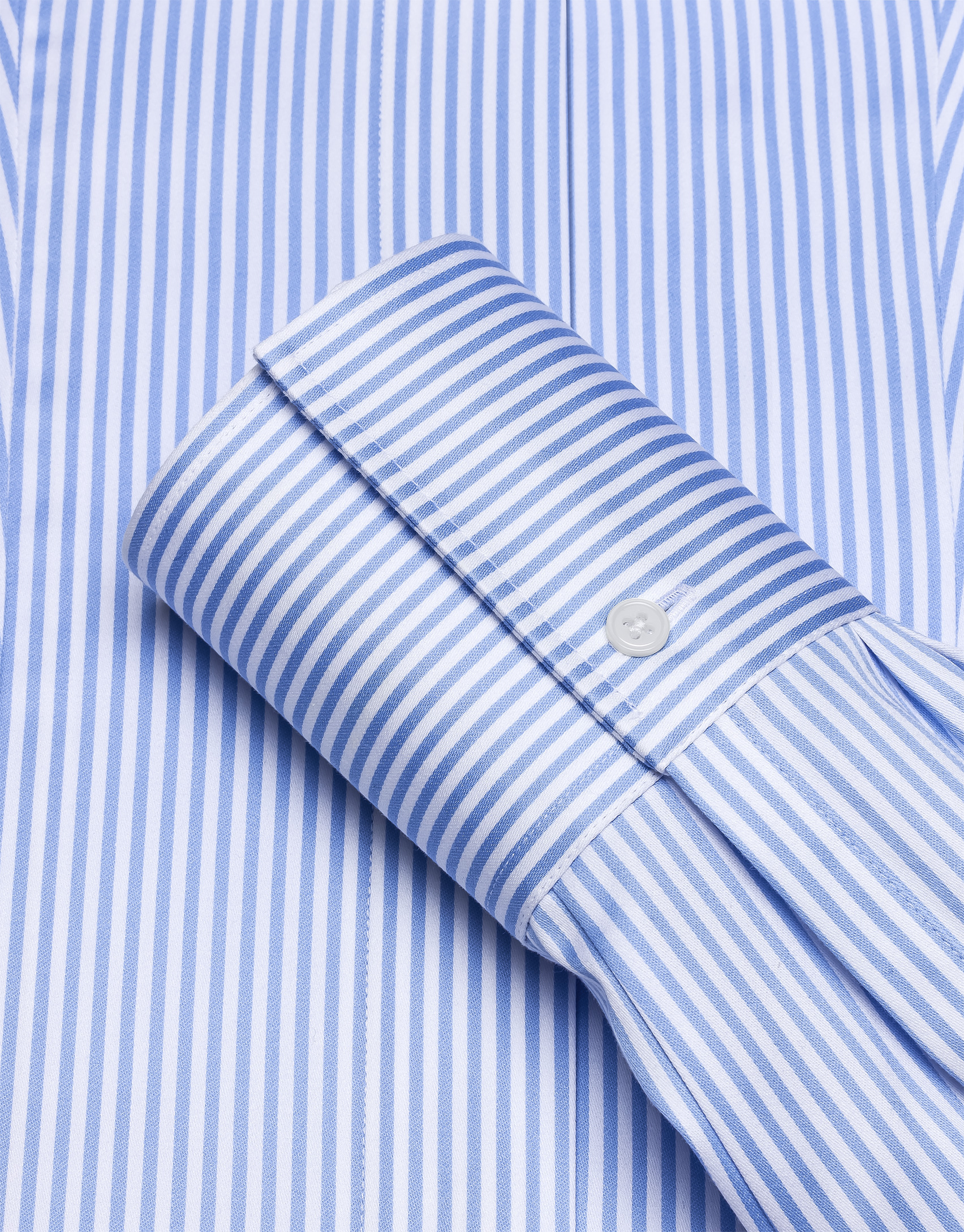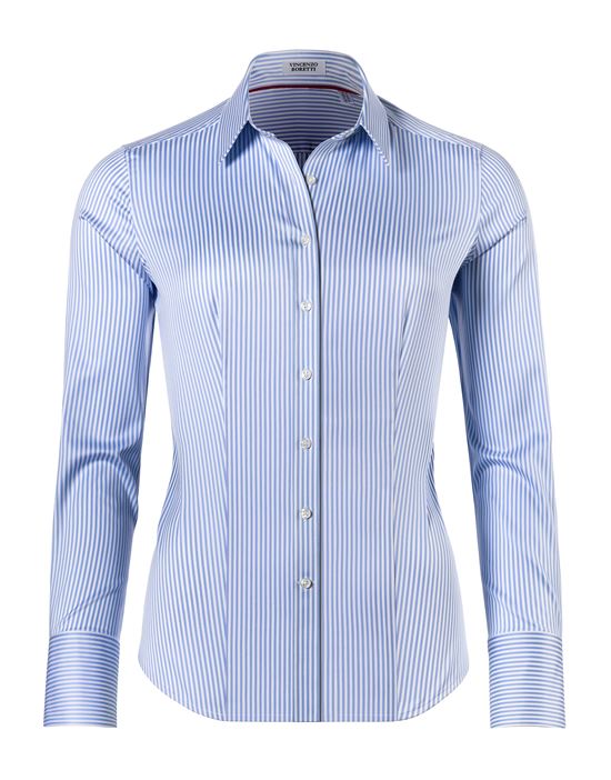 - Kentkragen, leicht tailliert, formgebende Taillenabnäher, gestreift