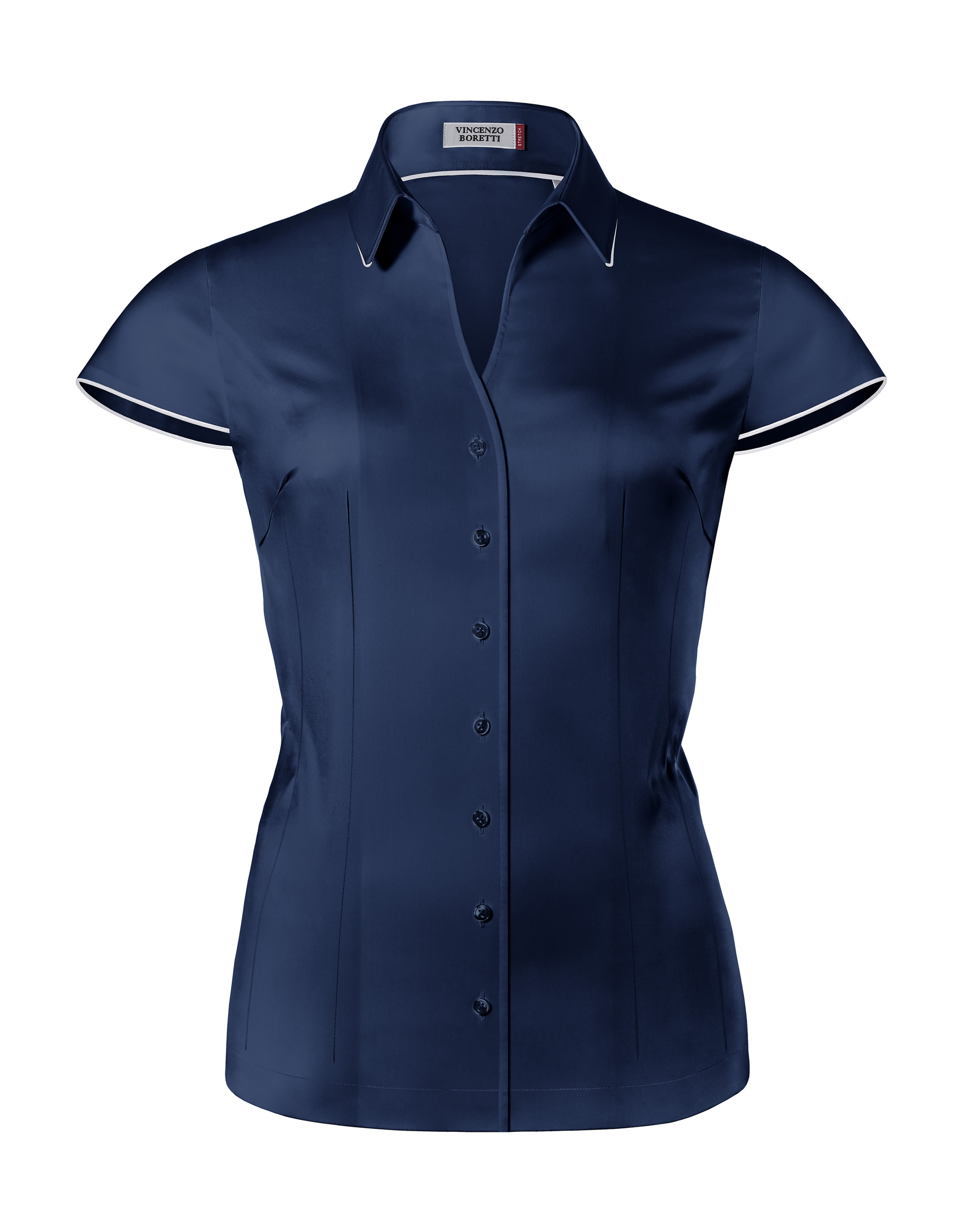 Blouse, slim-fit / fitted, stretch, shirt collar , short sleeves - easy-iron