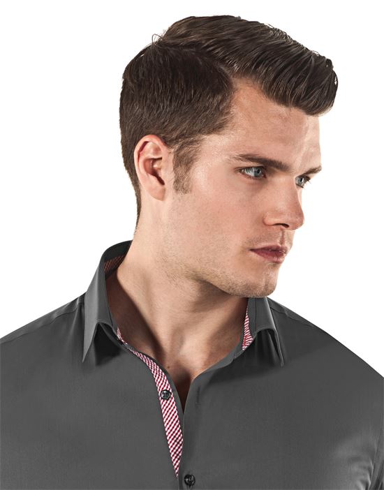 Very figure-hugging plain shirt with a full-length button placket and without a breast pocket. Its slim fit and defined shoulders create an athletic silhouette. The contrast edging in the cuff and button placket sets a stylish accent. The high-quality and supple easy-iron fabric is breathable and resistant to creases.