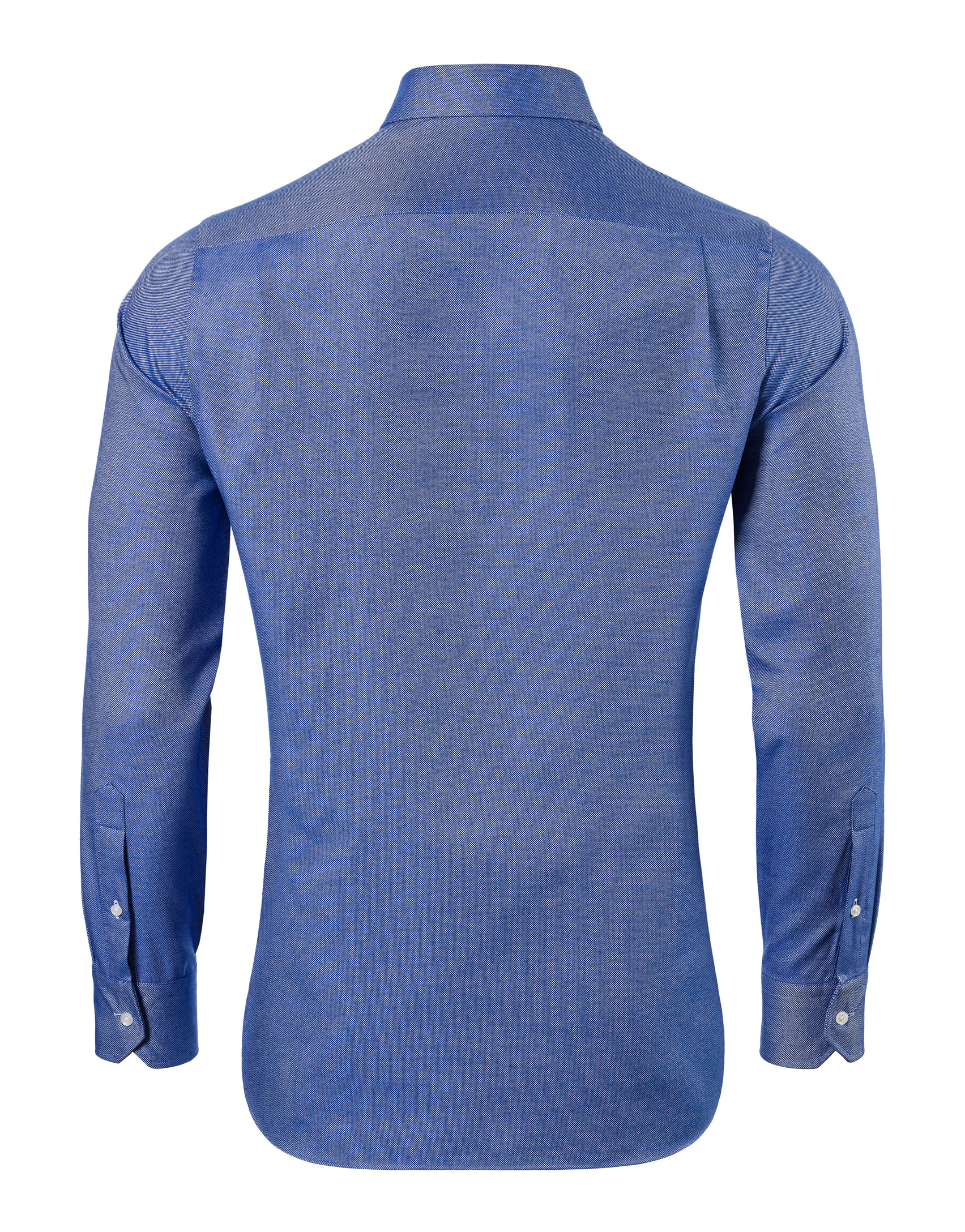 • no breast pocket, button placket, bottom button-hole is cut horizontally, replacement buttons, curved hem, fabric inlays on the side seams
