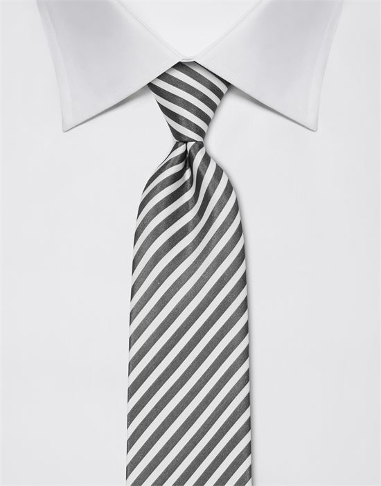 Klassische Krawatte mit Streifenmuster. Handgefertigt aus reiner Seide mit der höchsten Webdichte. Durch den Teflon Anti-Fleck-Schutz perlen Verunreinigungen einfach an ihr ab. An der Innenseite des breiten Krawatten-Endes befindet sich eine Schlaufe der Mittelnaht. Die Mittelnaht kann so wieder und wieder gestrafft werden und bleibt 'entspannt' - auch nach häufigem Binden.
