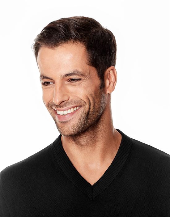 Dieser Pullover besitzt mit geripptem V-Ausschnitt, geripptem Saum und gerippten Ärmelbündchen ein klassisches Aussehen. Ein Metall-Logo an der Seitennaht setzt dabei einen dezenten Markenhinweis.